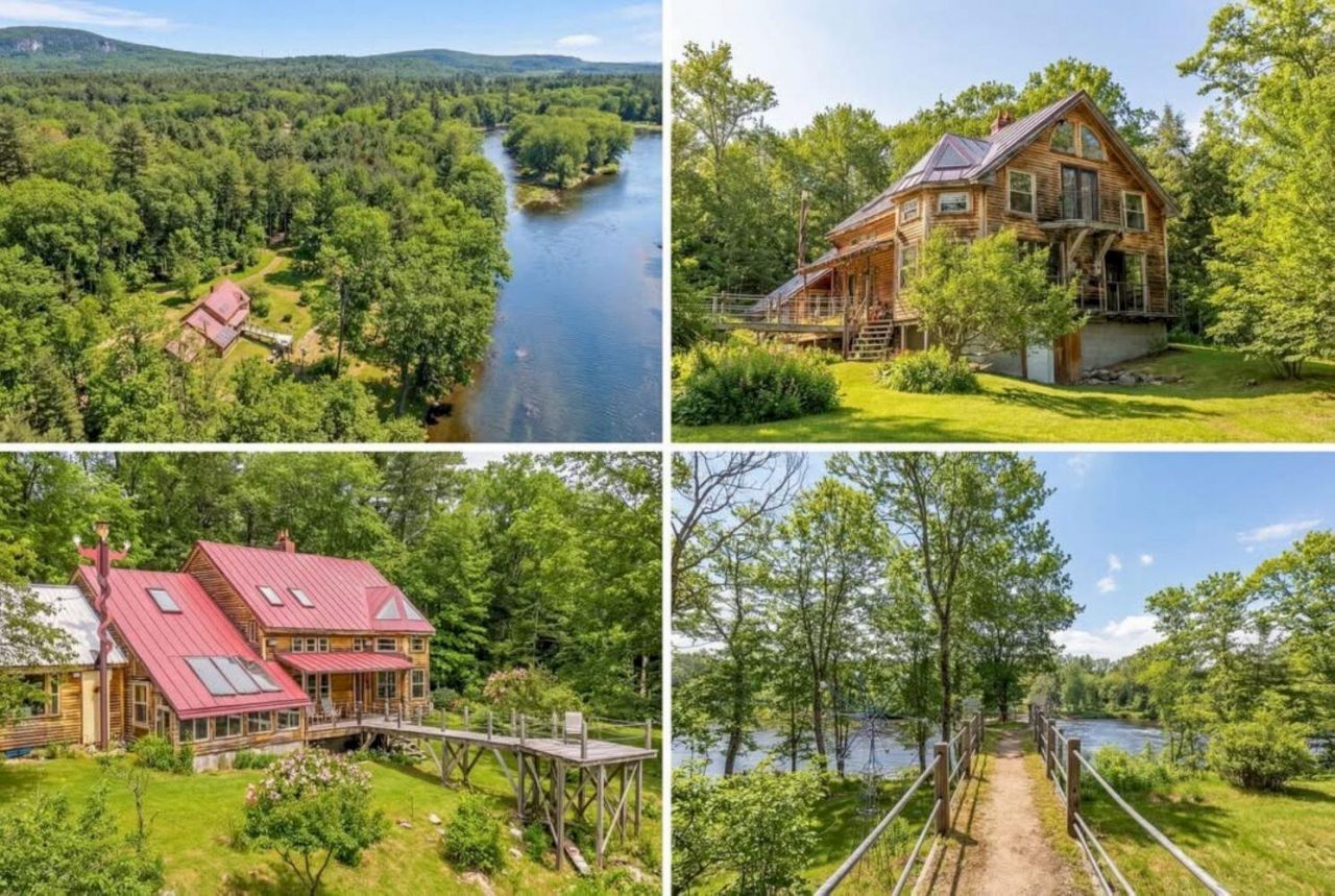 Attention to detail and sprinkled with stunning imagination, this one-of-a-kind, post and beam home, sitting on the Carrabassett River, will certainly tickle your fancy. Stained glass windows and hangings, suspended beds, attached greenhouse, pegged floors and doors and lots of floor to ceiling windows overlooking the river. Seller used his boat railing for the handrail going up to the primary suite on the 2nd floor and loft area with 2 twin beds. Stained glass cupboard doors in the kitchen, stained glass sliding doors separating the living area from the dining/kitchen area , built in bathtubs.....Too many little special things to mention, but must be seen to be appreciated. A separate 460 sq ft cottage also included in this great package that has shown promise as a year round Airbnb.A whimsical chimney greets you as you drive down the driveway. If not your dream home on the river, what a special year-round vacation home. Close to Sugarloaf USA with skiing in the winter, golfing in the summer, hiking, fishing and just pure relaxing literally at your finger tips. Square footage includes cottage.