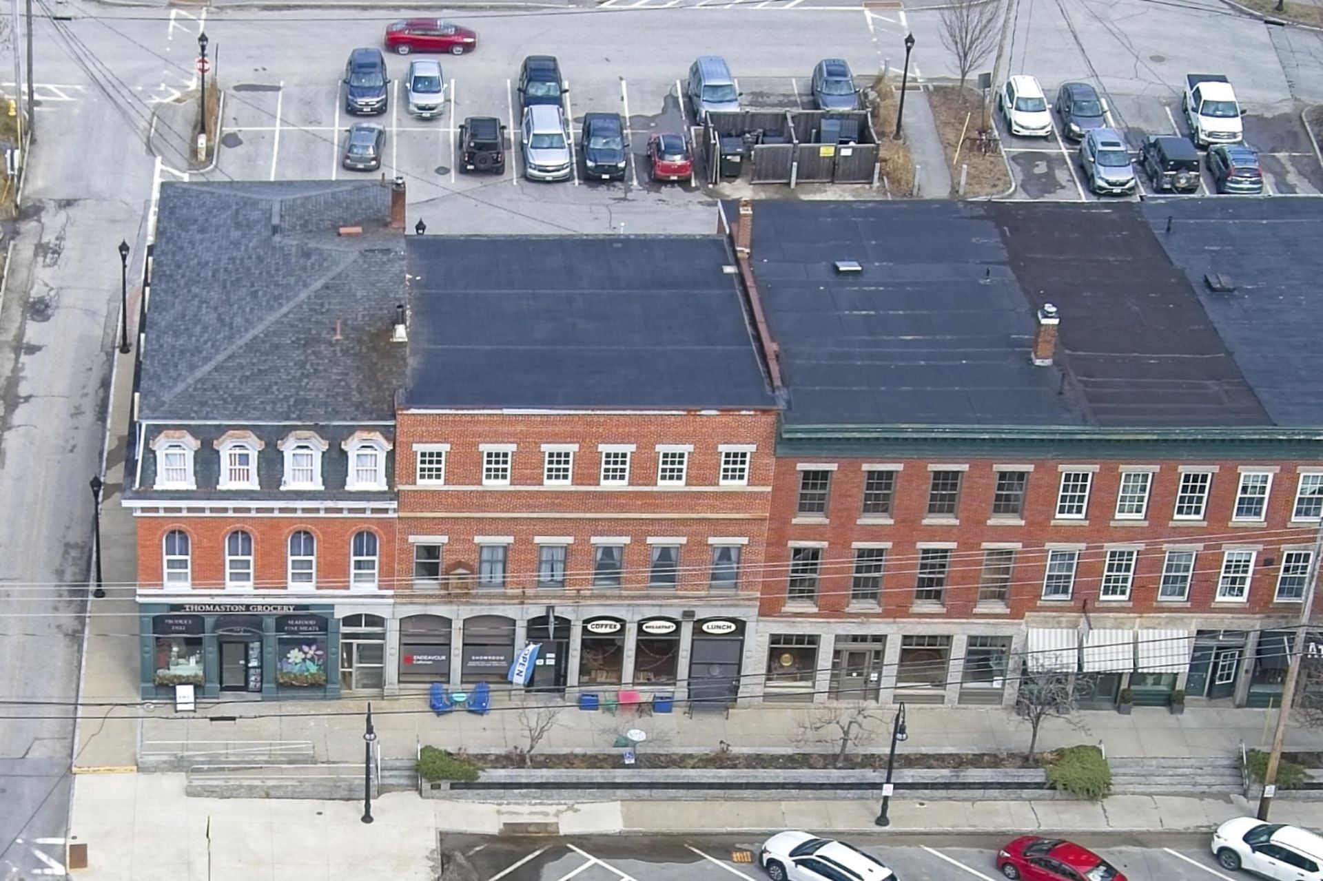 Prime brick commercial investment opportunity in downtown Thomaston. This mixed-use property features two established commercial tenants on the first floor, while the second floor presents significant value-add potential for office, studio, or residential conversion. The building offers large open layouts, two half baths per floor, and attractive Main Street frontage. A classic feature, the original bank safe, adds character and distinction. A unique opportunity to own a prominent building in a vibrant downtown setting. Businesses are not included in the sale.
