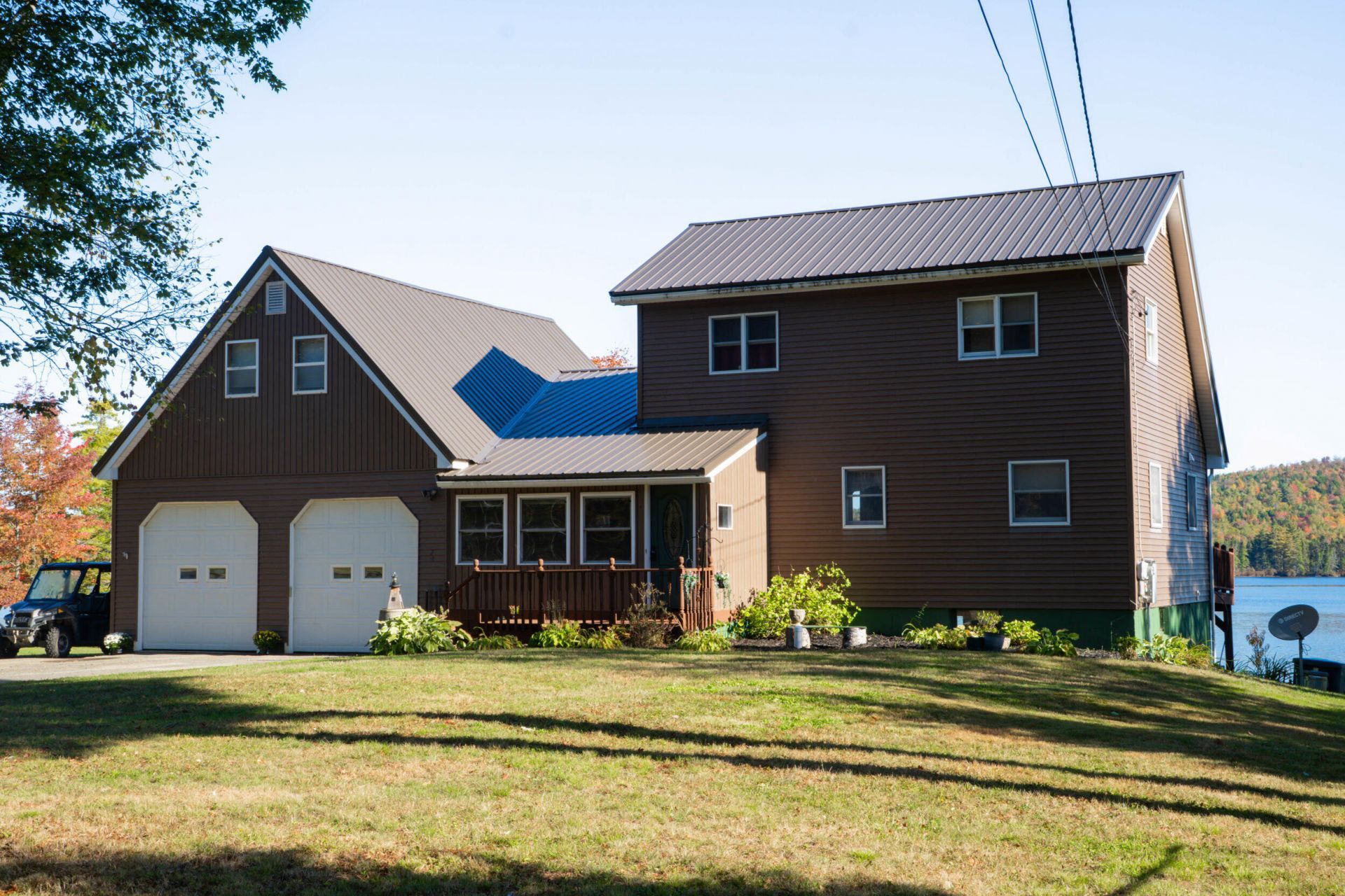 Welcome to 24 Autumn Lane, a thoughtfully designed 3-bedroom, 3-bath waterfront home offering space, versatility, and direct access to nature. Set on approximately 110 feet of frontage on Center Pond in Lincoln, this property is well-suited for both year-round living and seasonal enjoyment. The main level features a functional layout with a dining room, kitchen with pantry, living room highlighted by cathedral ceilings and a pellet stove, a mudroom, an office or additional bedroom, and a full bathroom. Upstairs, you'll find two bedrooms and another full bath. A private primary suite is located above the garage and is accessed from the dining area, offering a full bath, walk-in closet, and additional closet space. The walkout basement is accessible from the main level and provides excellent potential for future expansion. An attached two-car garage offers ample room for vehicles and storage, enhanced by recently added shelving. An additional lakeside garage bay provides ideal storage for lawn and garden equipment, ATVs, snowmobiles, and outdoor furniture. Outdoor living is well supported with a spacious deck for grilling and entertaining, perfect for enjoying time by the water or gathering around the fire pit. Recent improvements include fruit trees, raised garden beds, an aluminum dock, and freshly stained front and rear decks. Conveniently located near local schools, shopping, and recreational opportunities, 24 Autumn Lane offers a well-rounded waterfront lifestyle with practicality, comfort, and room to grow.