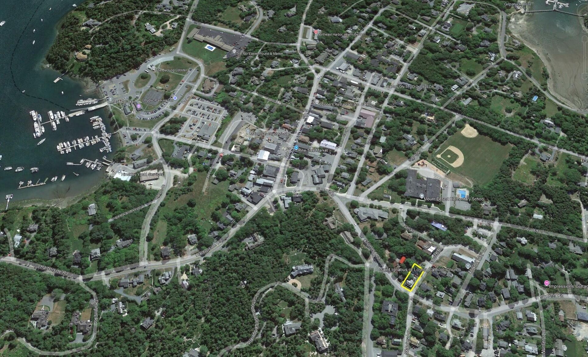 Larger double lot less than 1/2 mile from Historic Downtown Northeast Harbor. Cape style home is in poor condition but could be rehabbed or could be removed. Up to you! Lots of possibilities. Lots rarely come available. Don't miss your chance!