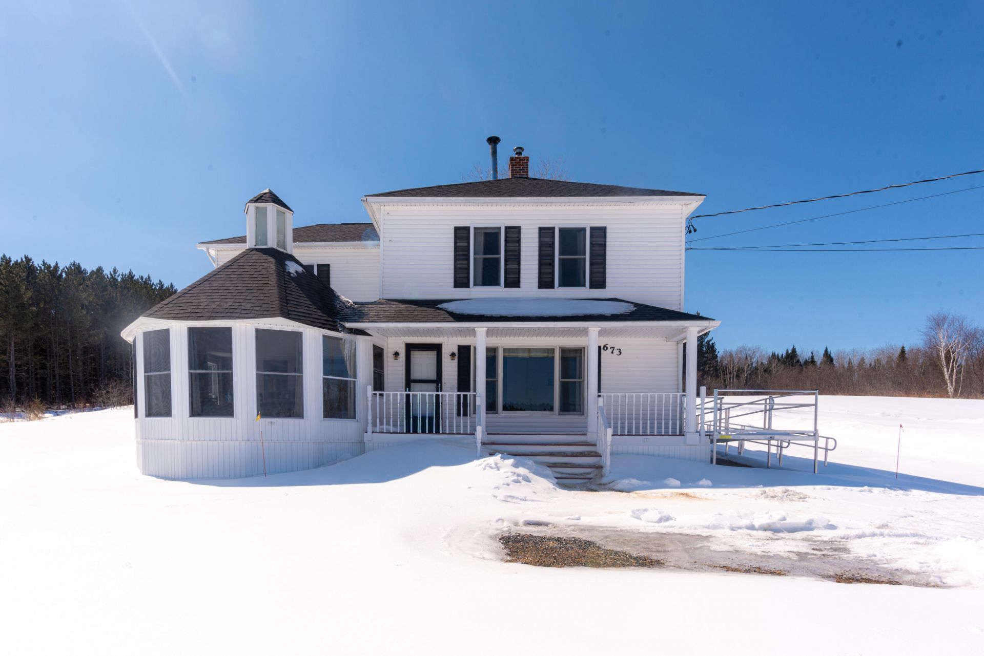 Enjoy this wonderful home offered in quiet and friendly Grand Isle! The highlight is the Rotunda room, which soaks in sun all day and offers wonderful views of the St John River and the hills of Canada. This home sits up high above Route 1 on over 6 acres just between Grand Isle and Lille, making it extra convenient to get to Madawaska and all other Aroostook Points. It features two story living with a full basement, and all major systems have been recently updated. It has two full baths and a half bath, with one of these being an ensuite to the primary bedroom. Beyond the rotunda room, the main floor has an open kitchen, a cozy living room, and a dining room that is currently being used as a first floor bedroom. Enjoy the natural warmth of the woodstove right in the center of the home, which saves on oil costs. The second floor features the three main bedrooms and a bath and a half. The full basement has interior and exterior access, and some of the upgrades include a new 200 amp electrical panel, new furnace, new water tank, new well pump and tank. The property offers lots of storage with a detached three car garage that is deep and wide, along with a small backyard barn. This exceptionally maintained home offers a peace of mind that you will be trouble free for many years. Call today for more information or a private showing!