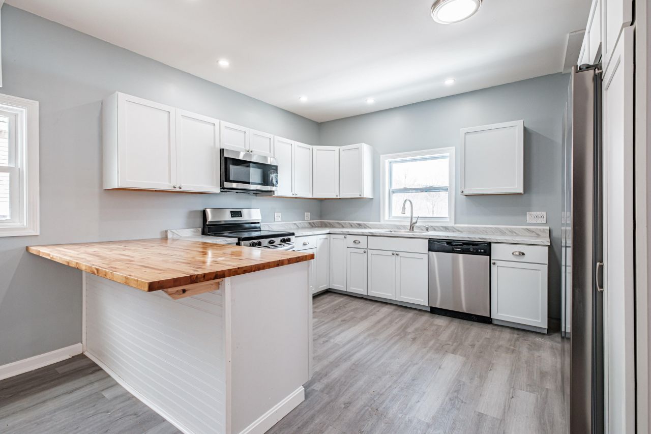 Completely renovated and ready for its next chapter, this spacious 4 bedroom home in Rumford delivers over 2,500 square feet of refreshed living space at an exceptional value. Step inside to find a brand new kitchen with clean, modern appeal, and a butcher block breakfast bar. There are also updated baths, and a new heating system designed for efficient year round comfort. Low maintenance vinyl siding enhances curb appeal while reducing future upkeep. Generous room sizes and flexible living areas provide plenty of space for everyday living, work from home needs, or entertaining. Situated on a convenient intown corner lot close to shopping, schools, and local services, with easy access to outdoor recreation including Black Mountain of Maine and the natural beauty of Rumford Falls. Move in, spread out, and enjoy the peace of mind that comes with major updates already complete.