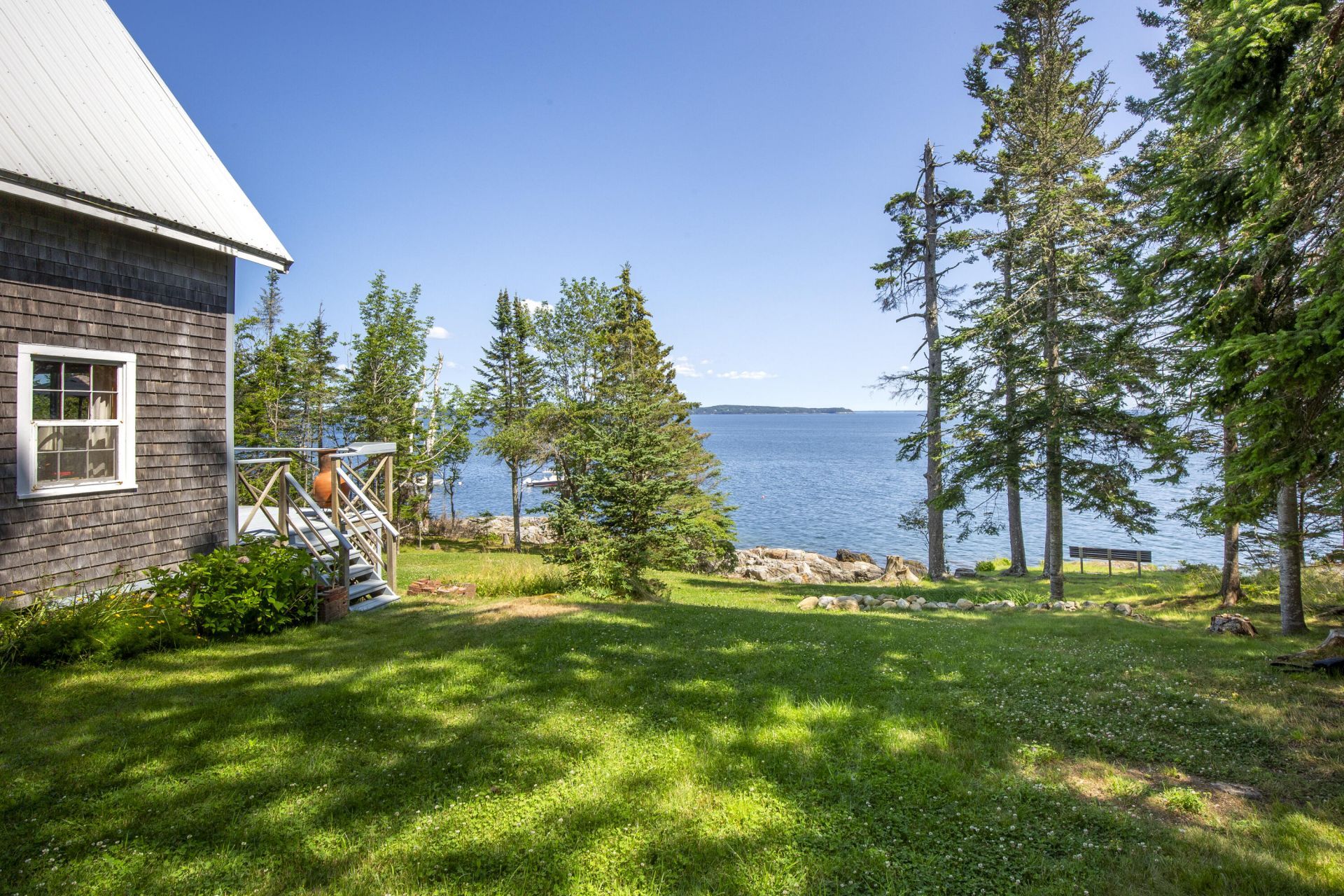 Rarely does a property like this become available in Islesboro's storied and much-loved summer colony, Sabbathday Harbor. Perfectly sited, up high on the shores of East Penobscot Bay, this classic cottage offers sweeping easterly water views extending to Cape Rosier and approximately 100 feet of bold, accessible shoreline. The first floor features a living room with a wood stove and doors that open to a spacious water view deck, a functional galley kitchen, and a full bath. The generous wrap-around deck provides the perfect vantage point for sunrise coffee, afternoon reading, or evening gatherings with the bay as your backdrop. Upstairs, three charming bedrooms capture the light and sea breezes. A separate simple structure could make for a fun getaway space. Steeped in tradition and rich in natural beauty, this property invites you to create lasting memories for generations to come in one of Maine's most cherished summer enclaves.